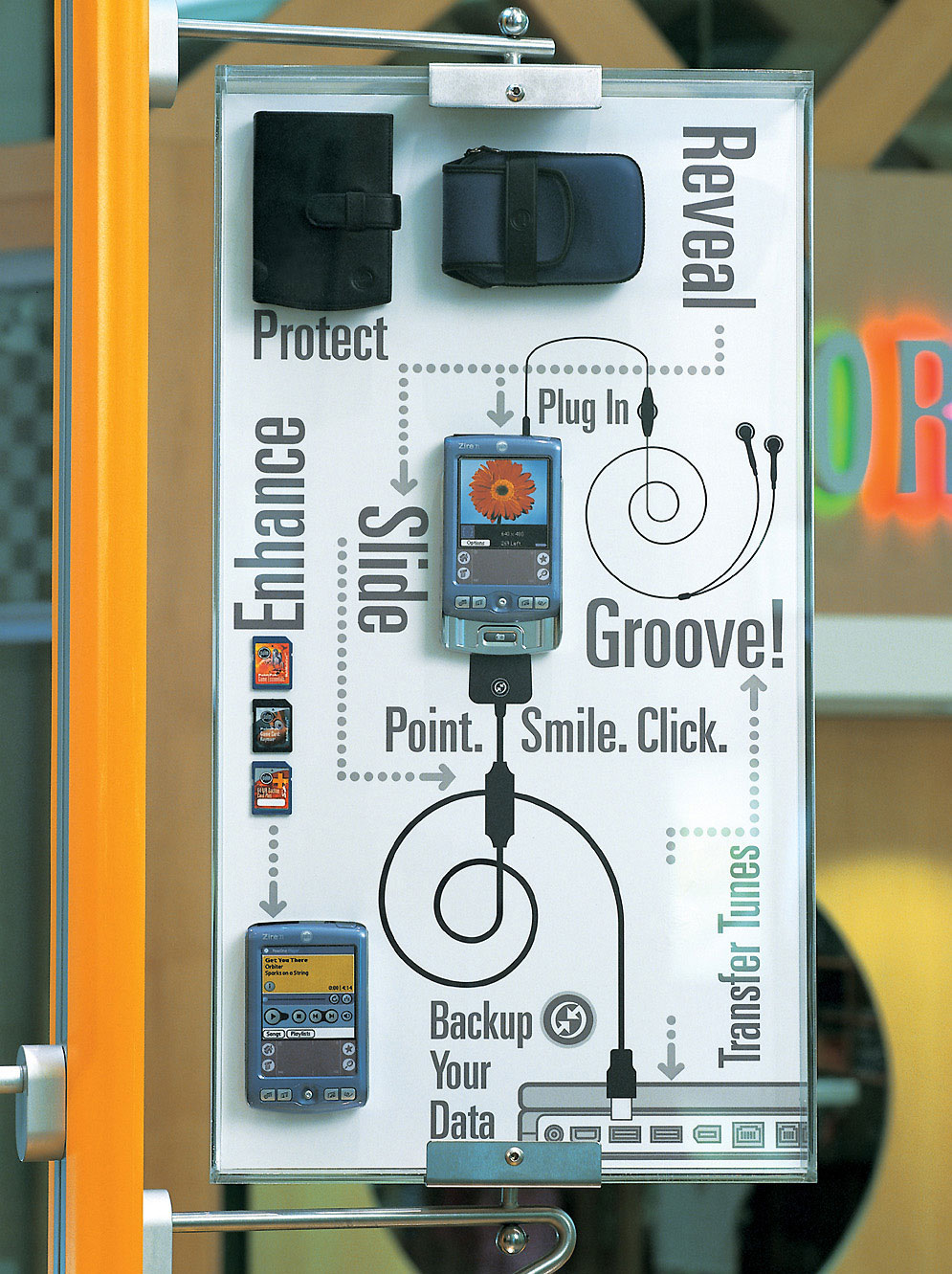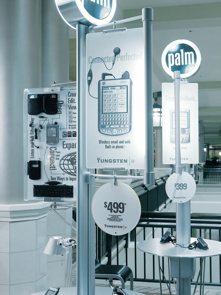 As further versions of these coveted devices were developed, Palm found a new niche to enter the brick-and-mortar retail arena with it’s own stores. I was contacted by them to create a visual language for the brand as well as how to communicate the many technological features of the devices.